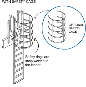Tight fit? US Mezzanine ladders make an ideal, space-saving alternative to staircases. Built to meet your code and safety standards, our standard ladders are 24” wide and sealed with a powder-coated safety yellow paint finish. Optional safety cages are also available for added fall protection.