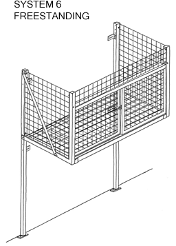 System 6 is a freestanding unit featuring a spacious 6’,7’ or 8’W x 4‘H x 3’D interior. All side, floor and transom panels are made of unframed 2”x2”x6&8GA electro-galvanized welded wire mesh. This innovative design allows for any necessary trimming around water pipes, wall irregularities and obstructions to be done right on-site, eliminating costly installation charges. Posts are made of 1 1/2”x1 1/2”x16GA square tubing with adjustable foot plates for easy adaptability on uneven surfaces. All upper and lower tracks, side frames, braces and doors are sealed with a silver powder-coated paint finish. All hanging locker systems are equipped with 2 sliding doors.